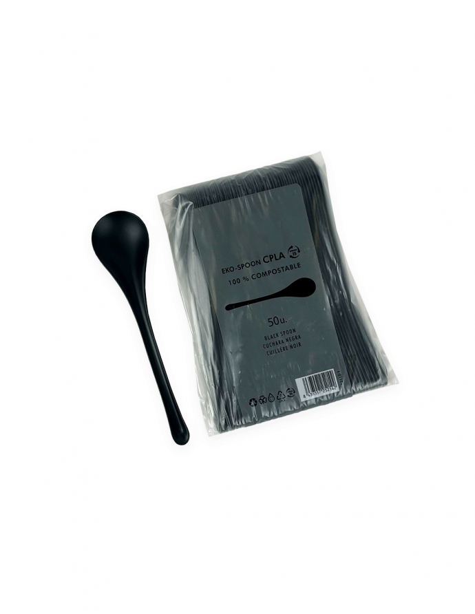 Este paquete de 50 cucharas de CPLA en elegante color negro es una opción ideal para quienes buscan cubiertos resistentes, reutilizables y comprometidos con el cuidado del medio ambiente. Con una longitud de 18 cm, estas cucharas ofrecen una estructura firme y cómoda, perfecta para una gran variedad de usos tanto en entornos profesionales como en eventos particulares.