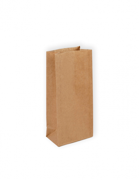 Bolsa americana depapel kraft de 70 g, ligera y resistente. Medida 14x8x29 cm. Pack de 50unidades para comercios y hostelería.