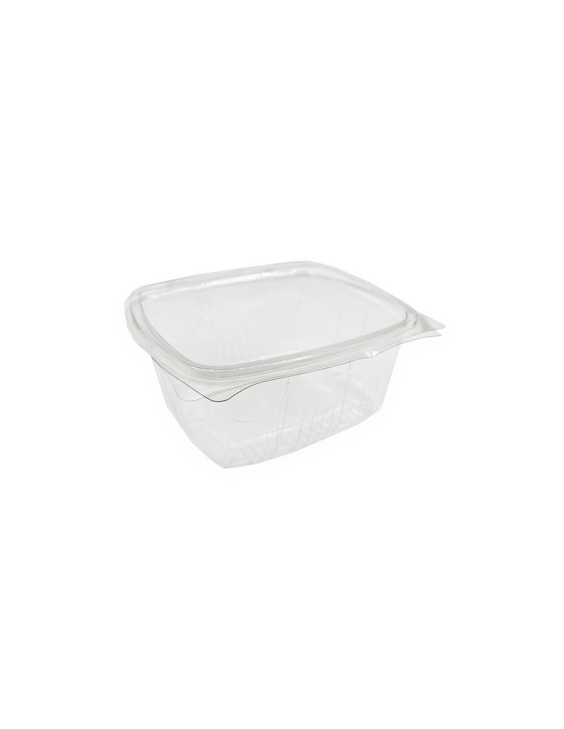 Tarrina de PET con bisagras con una capacidad de 750 ml. Las tarrinas de PET tienen una mayor resistencia a los impactos por lo que son ideales para transportar o manipular.Paquetes de 100 unidades.